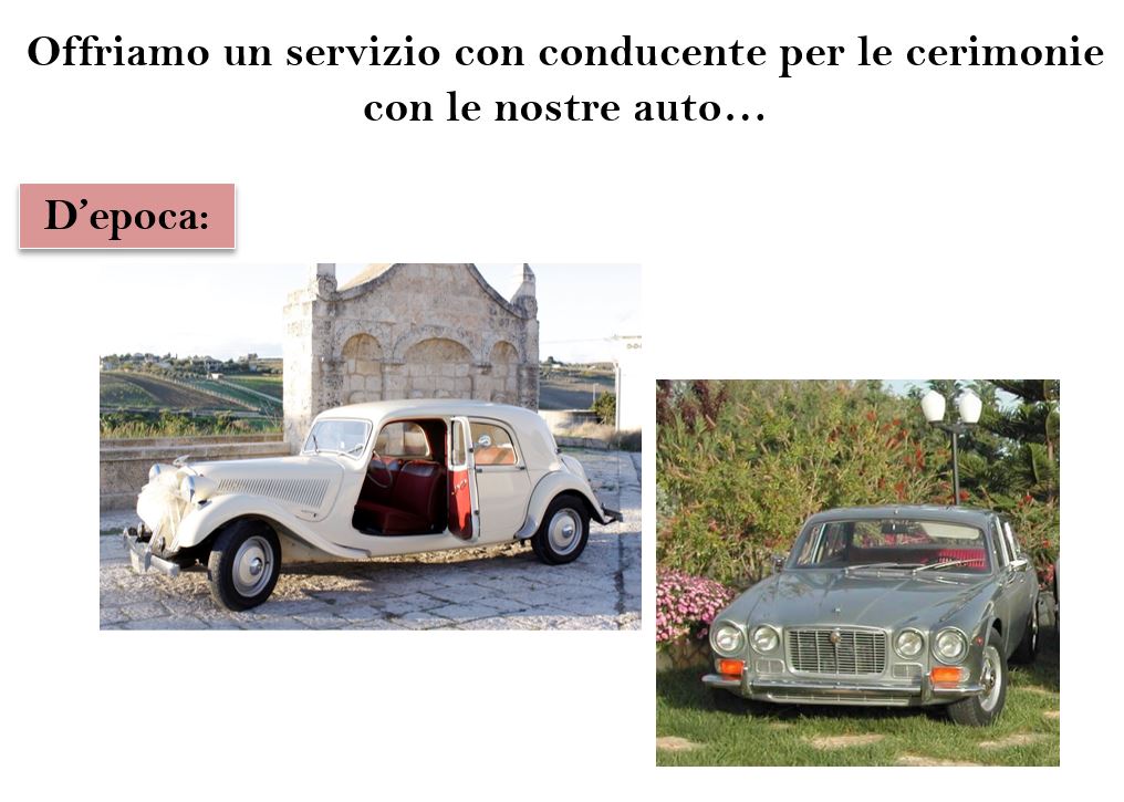 Inoltre, disponibilità di autoveicoli per il noleggio senza conducente e di auto d'epoca da cerimonia.